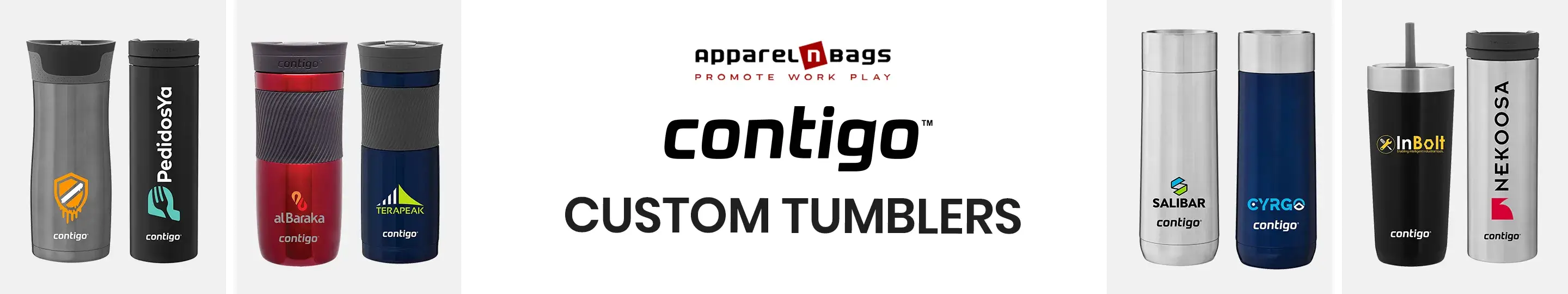 Contigo tumblers with logo can serve as a great promotional gift in your branding marketing efforts of your business. ApparelnBags offers variety of Contigo® custom tubmlers which you can choose from and we will place your business logo at most conspicuous place to give your brand maximum exposure. The customized Contigo coffee tumbler are the most economical way to promote your business that create brand awareness at minimum cost and customers ae exposed to message frequently with higher retention. Please browse through the Contigo personalized tumbler and choose the one most suitable for you.